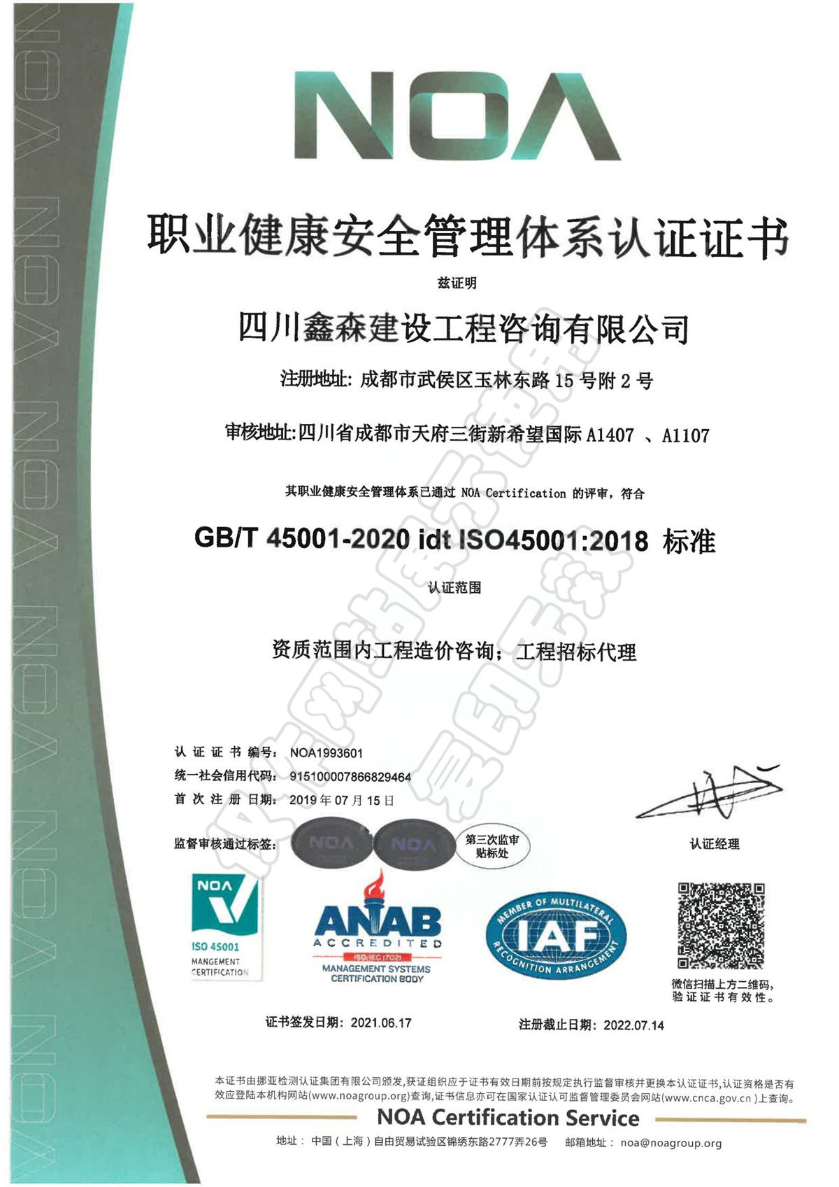 2022年职业健康安全管理体系认证证书-四川全过程工程咨询, 四川全过程咨询机构, 四川工程造价公司, 成都全过程咨询机构, 成都全过程工程咨询, 成都工程造价咨询公司, 成都工程造价公司, 四川全过程工程咨询, 四川全过程咨询机构, 四川工程造价咨询公司, 四川工程造价公司, 成都全过程咨询机构, 成都全过程工程咨询, 成都工程造价公司, 成都工程造价咨询公司